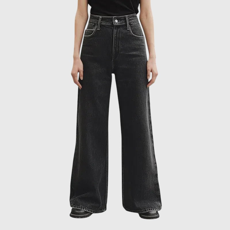 Evanya™ | Zwarte Spijkerbroek Wijde Pijpen