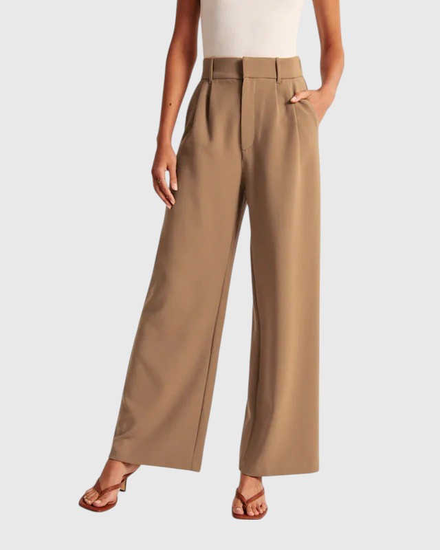 De Evanya™ | Hoge Taille Pantelon met Wijde Pijpen straalt een verfijnde elegantie uit en biedt tegelijkertijd ongeëvenaard comfort. Perfect voor zowel dagelijkse als formele gelegenheden, deze pantalon is een veelzijdige aanvulling op elke garderobe.