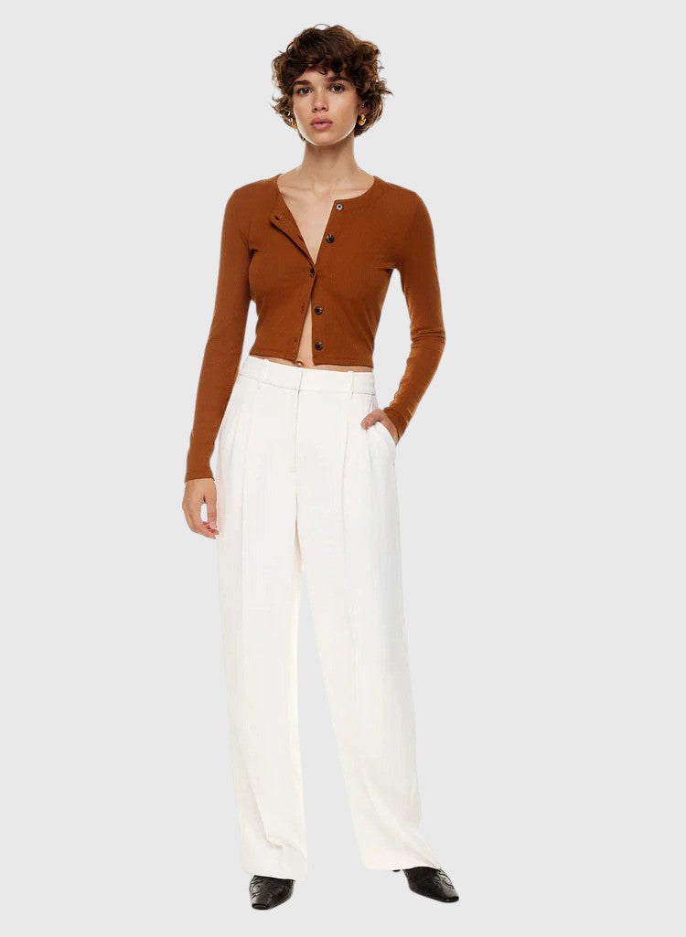• De wijde pijpen en hoge taille zorgen voor een flatterend silhouet en een moderne uitstraling.
