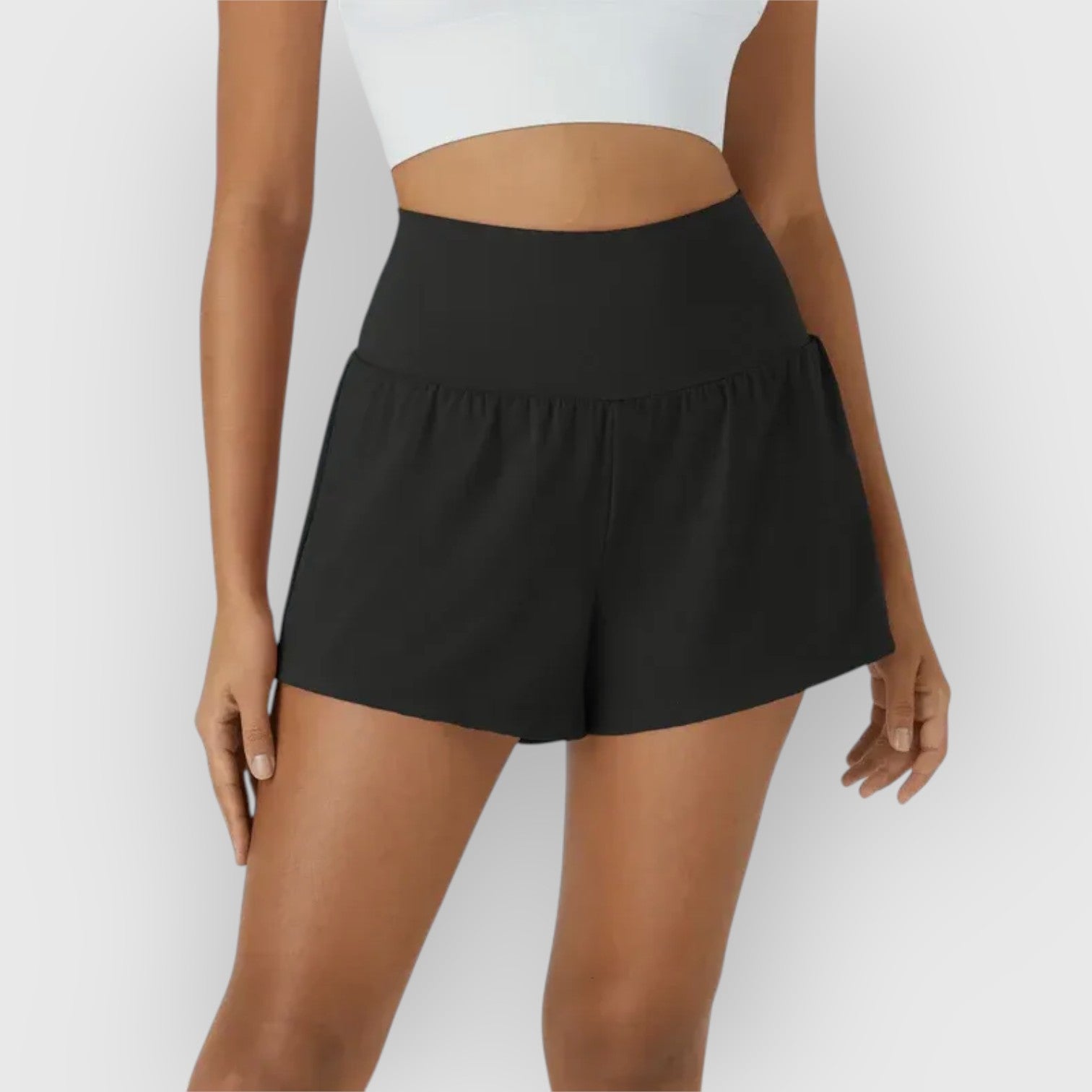 Ontdek de Evanya™ | Hoge Taille Sculpt Shorts – de perfecte combinatie van functionaliteit en stijl. Deze high-rise 2-in-1 shorts zijn ontworpen om je taille te accentueren en je dagelijkse activiteiten te vergemakkelijken. Met een elegante, uitlopende buitenlaag en verborgen binnenzakken voel je je comfortabel en modieus, of je nu aan het sporten bent of ontspant.