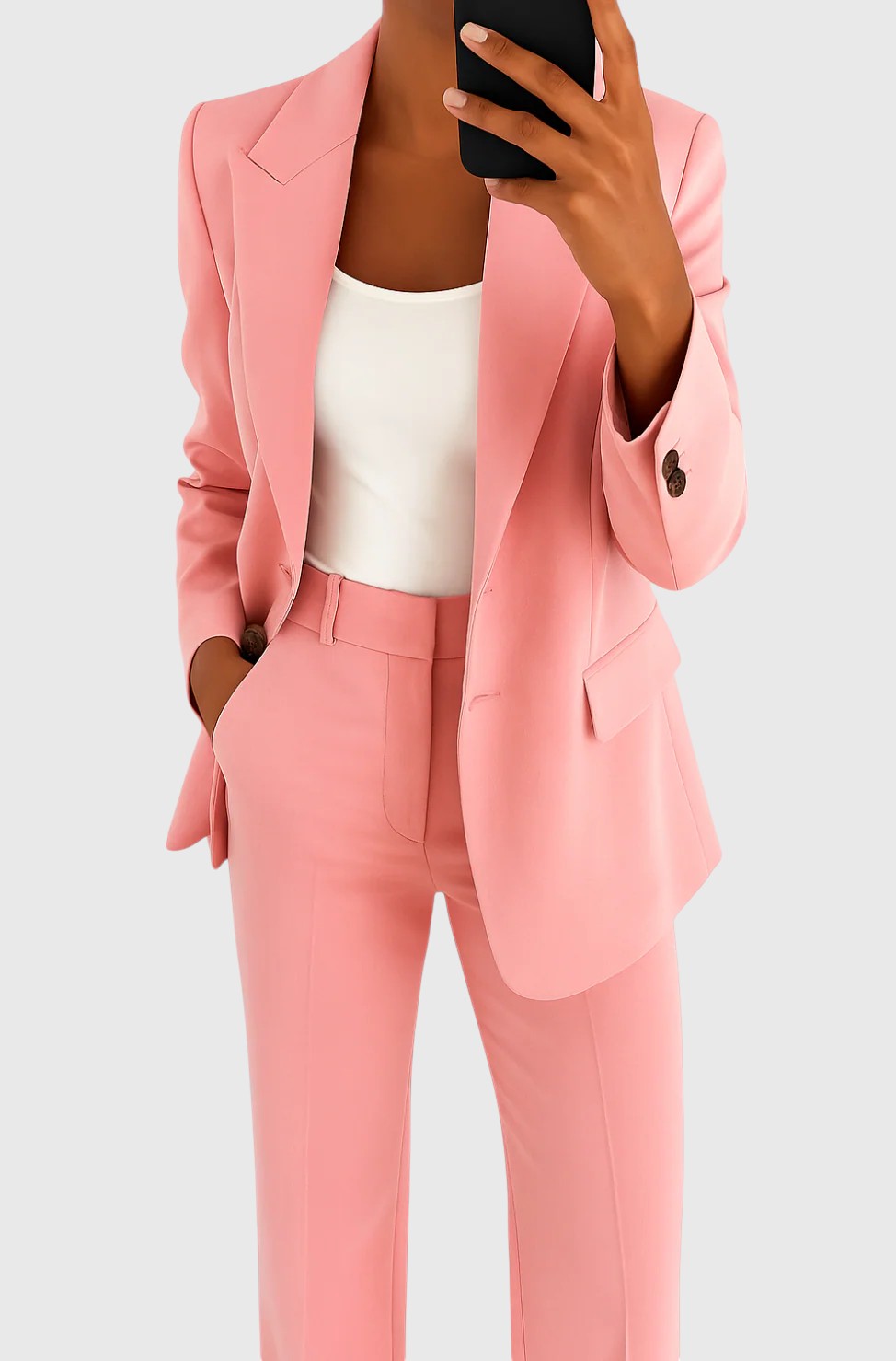 Het Pak Dat Zelfvertrouwen Spreekt Onze Evanya™ | Maatpak verenigt structuur, elegantie en modern minimalisme in een verfijnde look—ideaal voor momenten waarop je sterk en stijlvol wilt verschijnen. Deze populaire blazer en broek combinatie biedt strakke lijnen en een flatterende pasvorm, waardoor het de perfecte keuze is voor op kantoor, belangrijke vergaderingen of avonden die om moeiteloze krachtmode vragen.