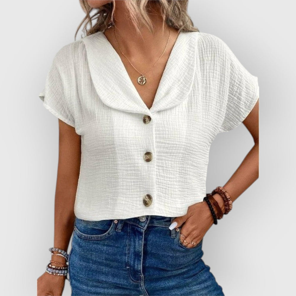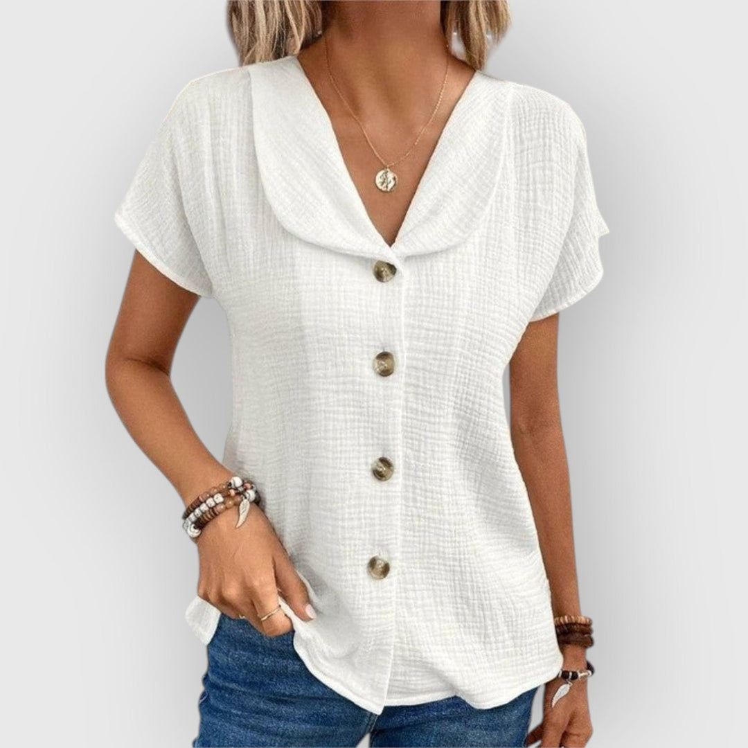 Evanya™ | Linnen Blouse met Knoopjes